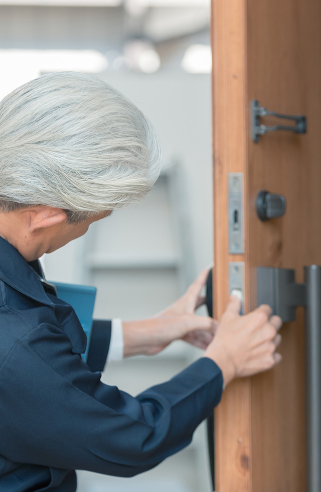 防犯性の向上にセキュリティーの高い鍵への交換は欠かせません。賃貸にお住まいのお客様ですと基本的に新しく入居する際は、鍵を交換するかと思います。ですが戸建て住宅にお住まいの方ですと、鍵の交換ということはあまり考えないかもしれません。鍵というものは古いものほど使いづらくなり、新しいものにすればするほど空き巣対策になり得ます。また、ドアに鍵を複数取り付けることも防犯性の向上につながります。我々、鍵のプロフェッショナルがお客様のご要望に沿った形で、防犯性、利便性が向上するようカギ交換、カギ取り付けをご提案させていただきます。